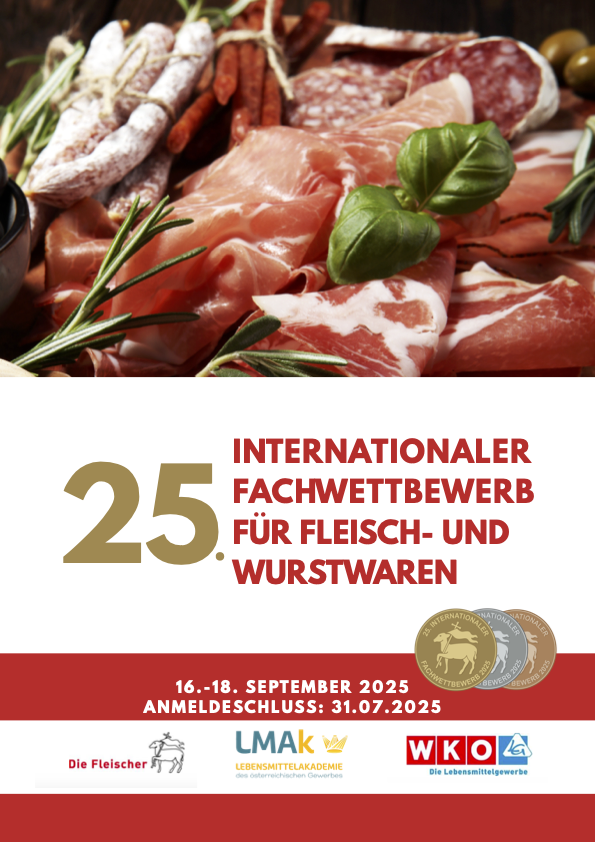 Machen Sie mit beim Internationalen Fachwettbewerb für Fleisch- und Wurstwaren! Veranstaltet von der Bundesinnung der Lebensmittelgewerbe, Organisation durch die Lebensmittelakademie des ...